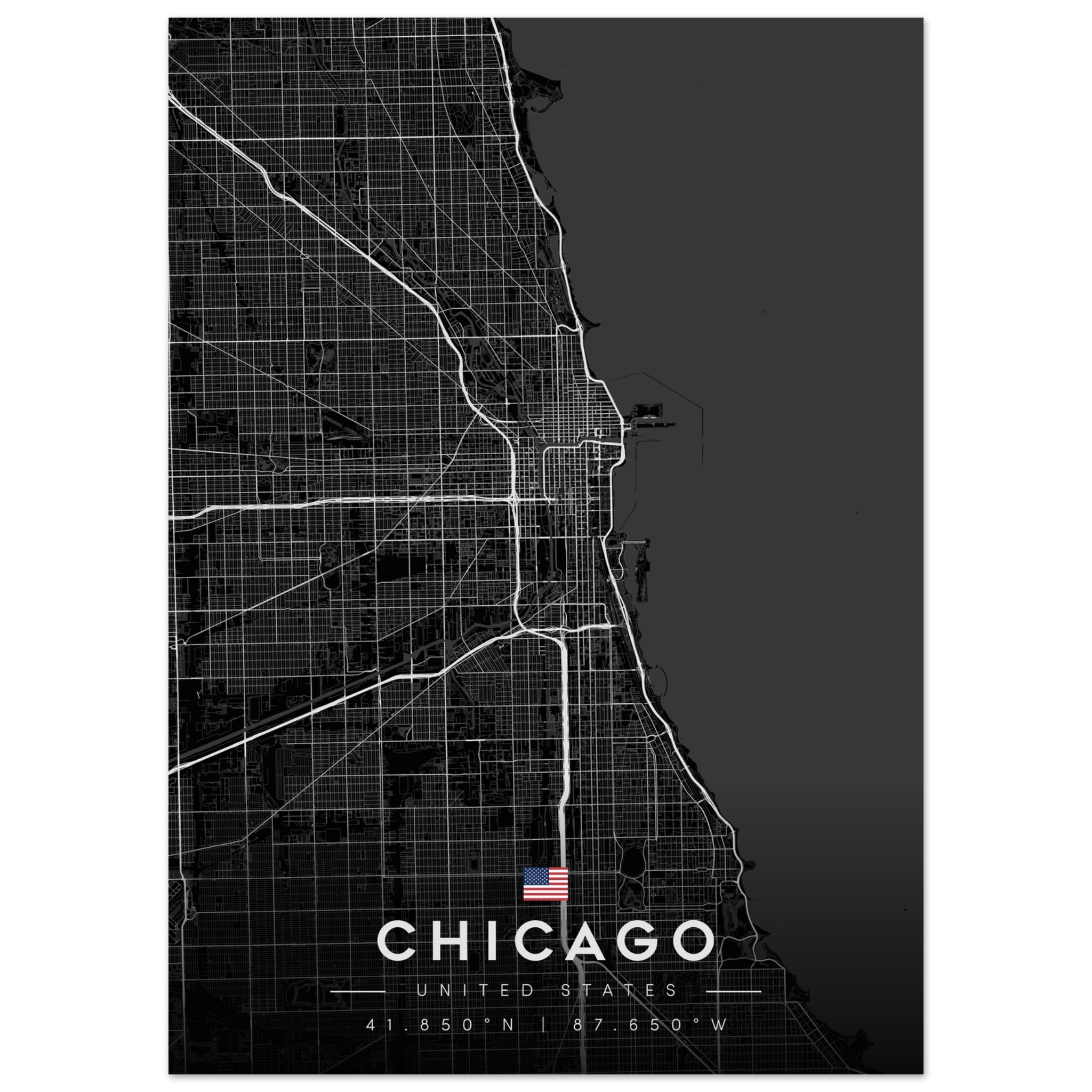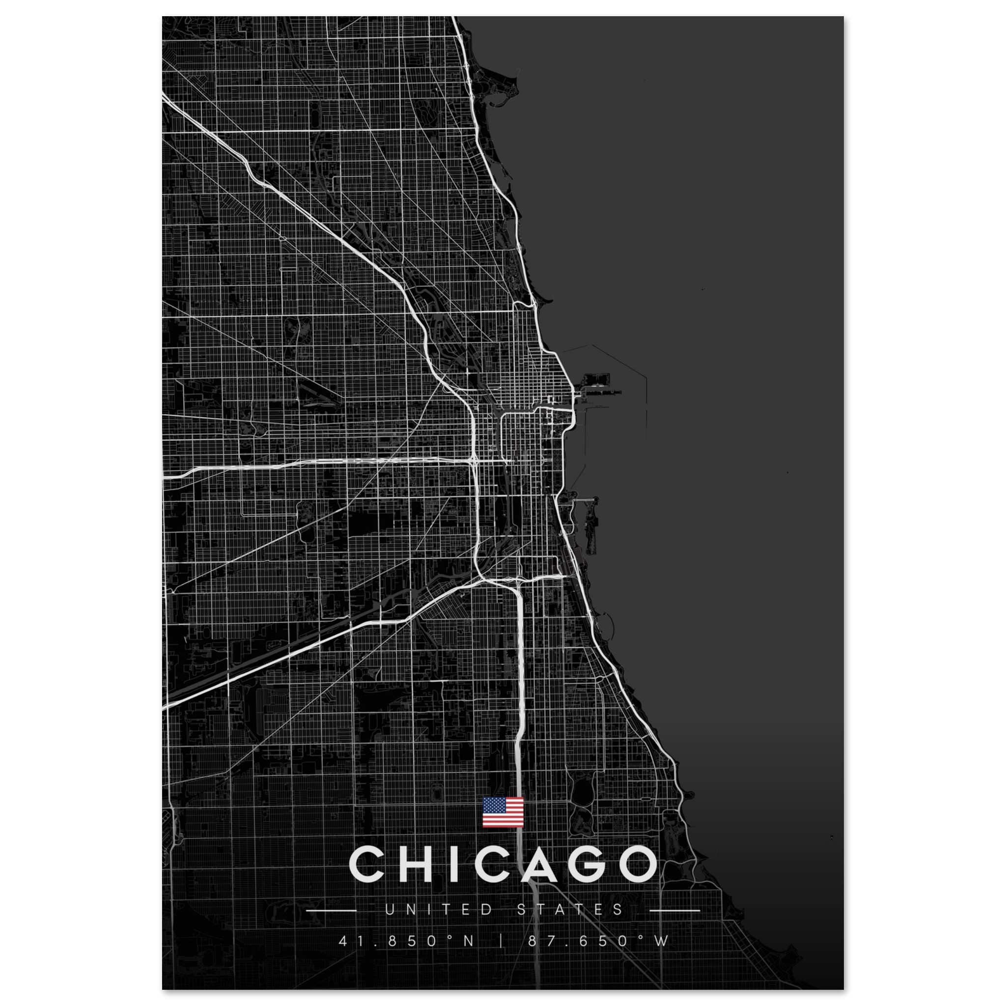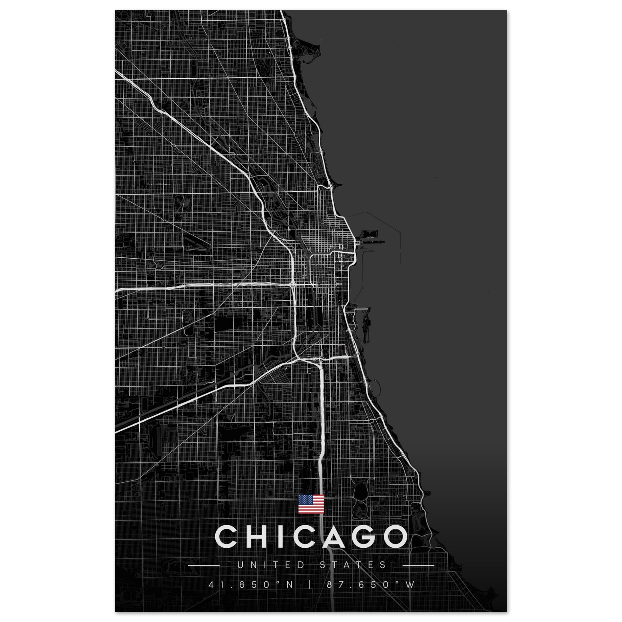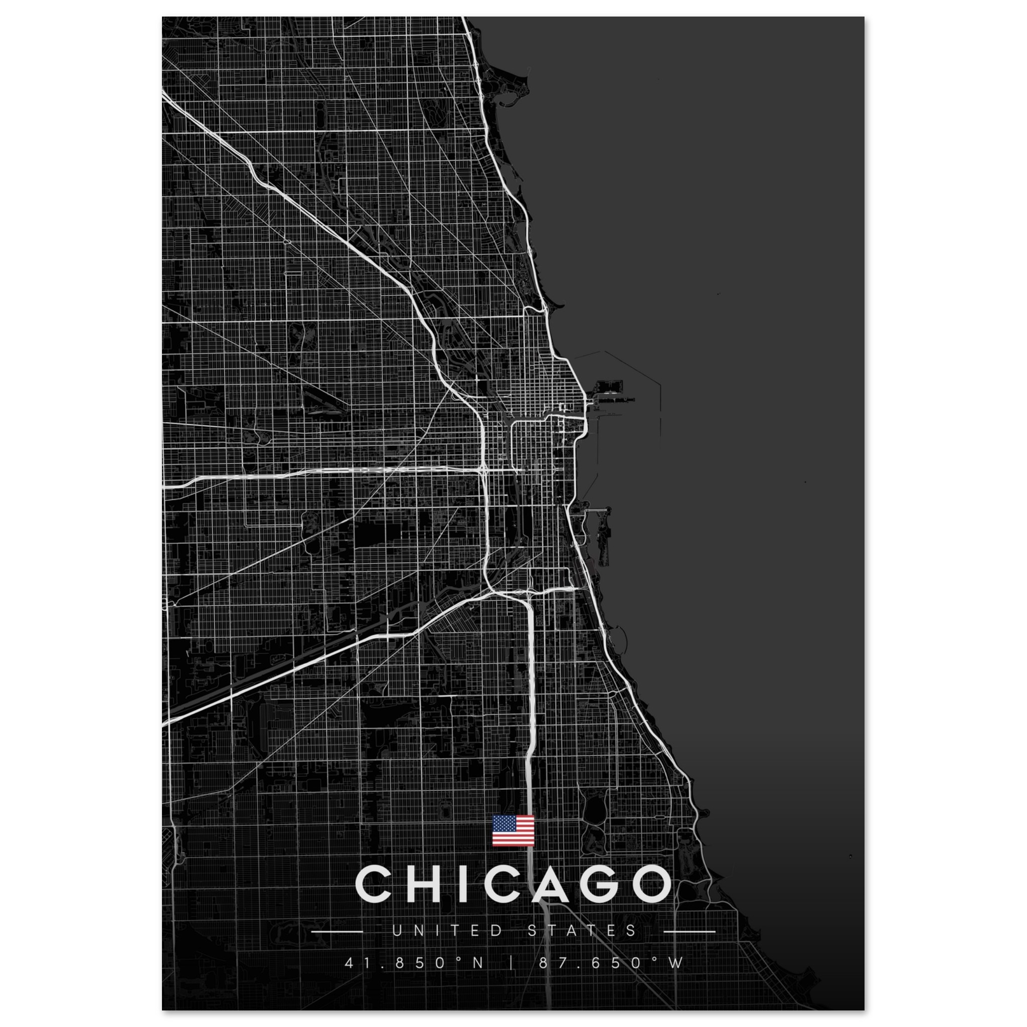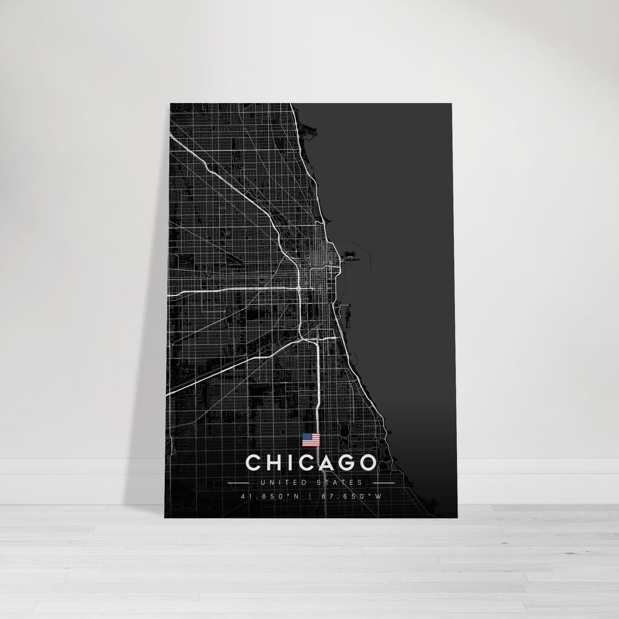 Chicago Map Poster, Dark Mode Wall Art, Carbon Black City Print, Modern Home, Office Decor, Urban Gift