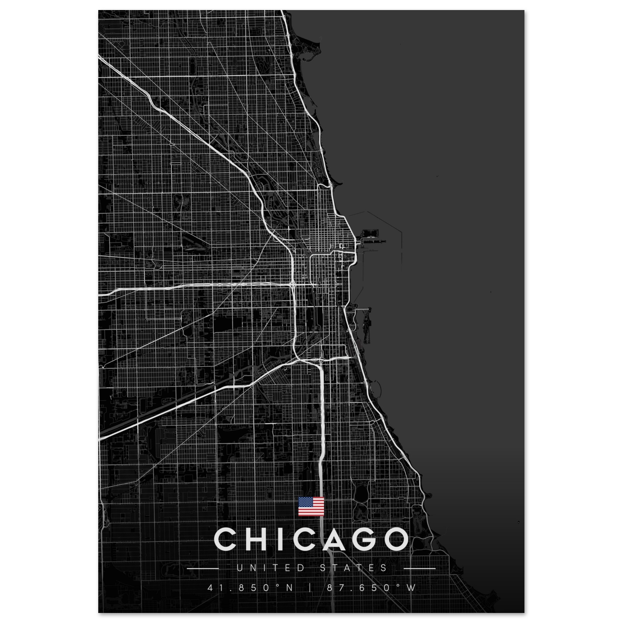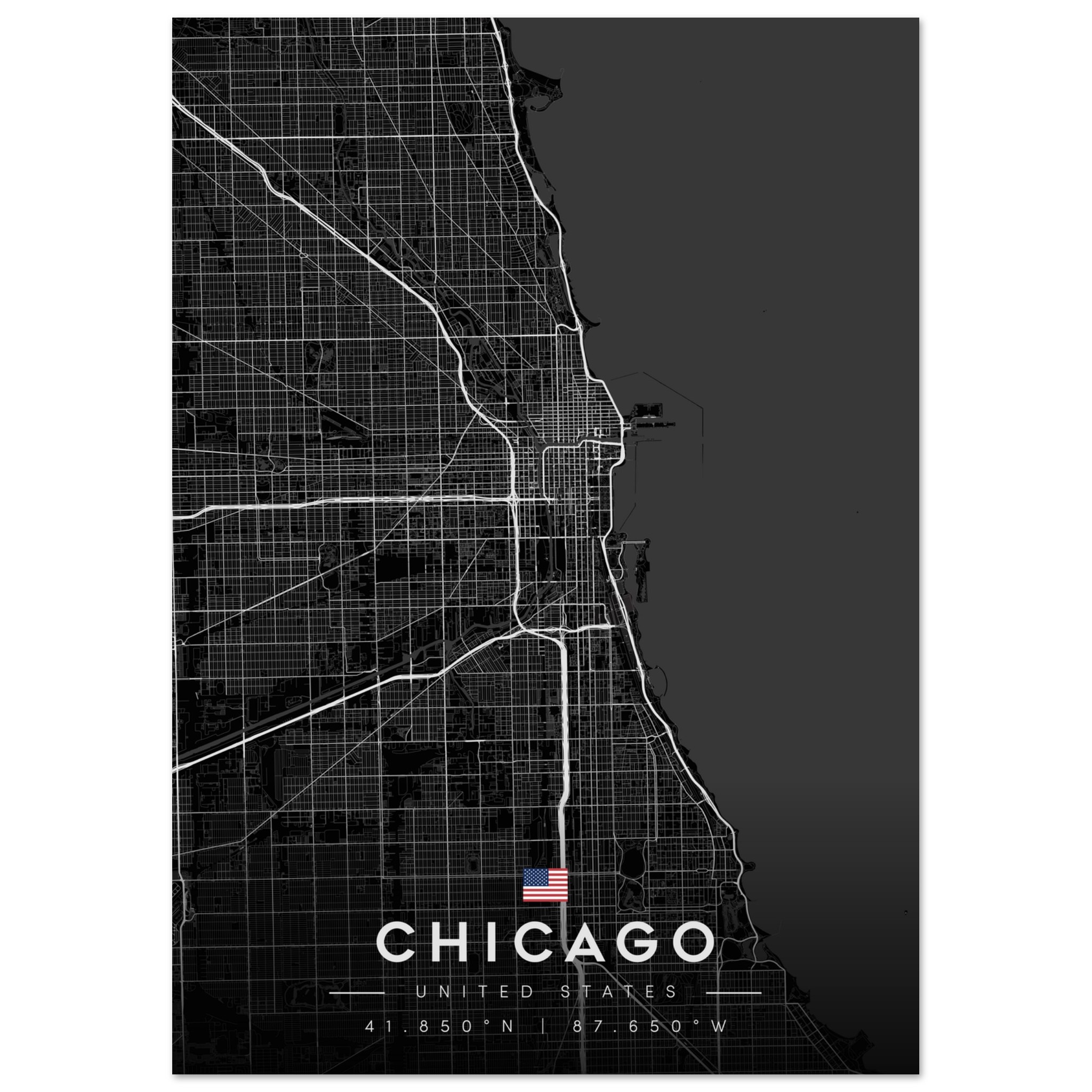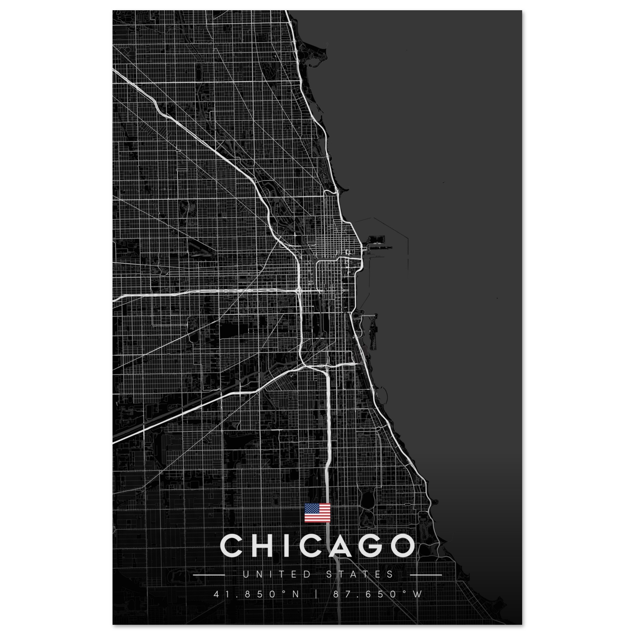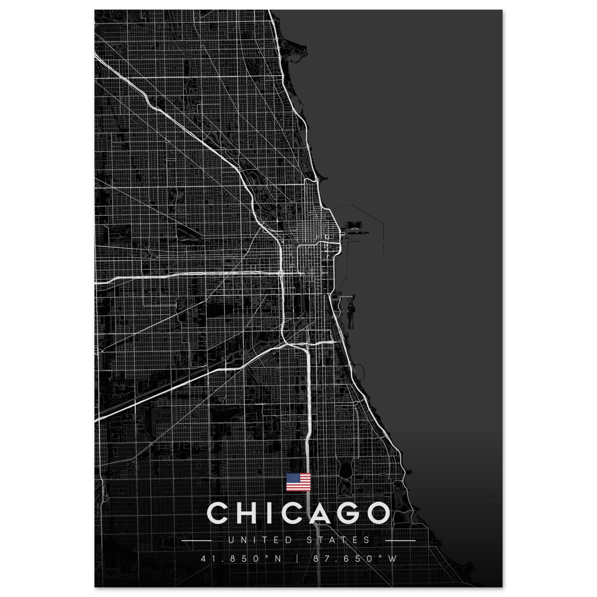 Chicago Map Poster, Dark Mode Wall Art, Carbon Black City Print, Modern Home, Office Decor, Urban Gift