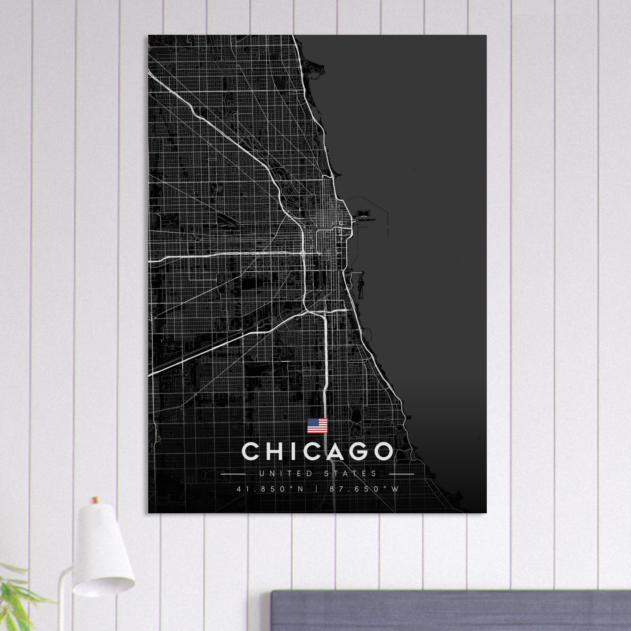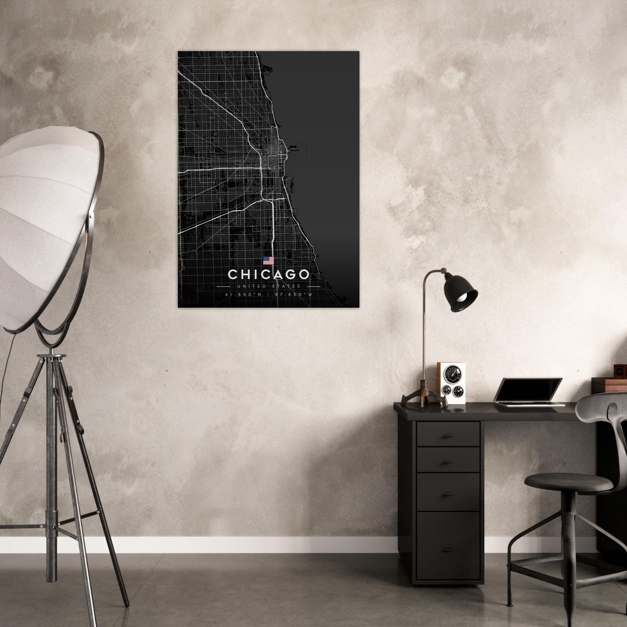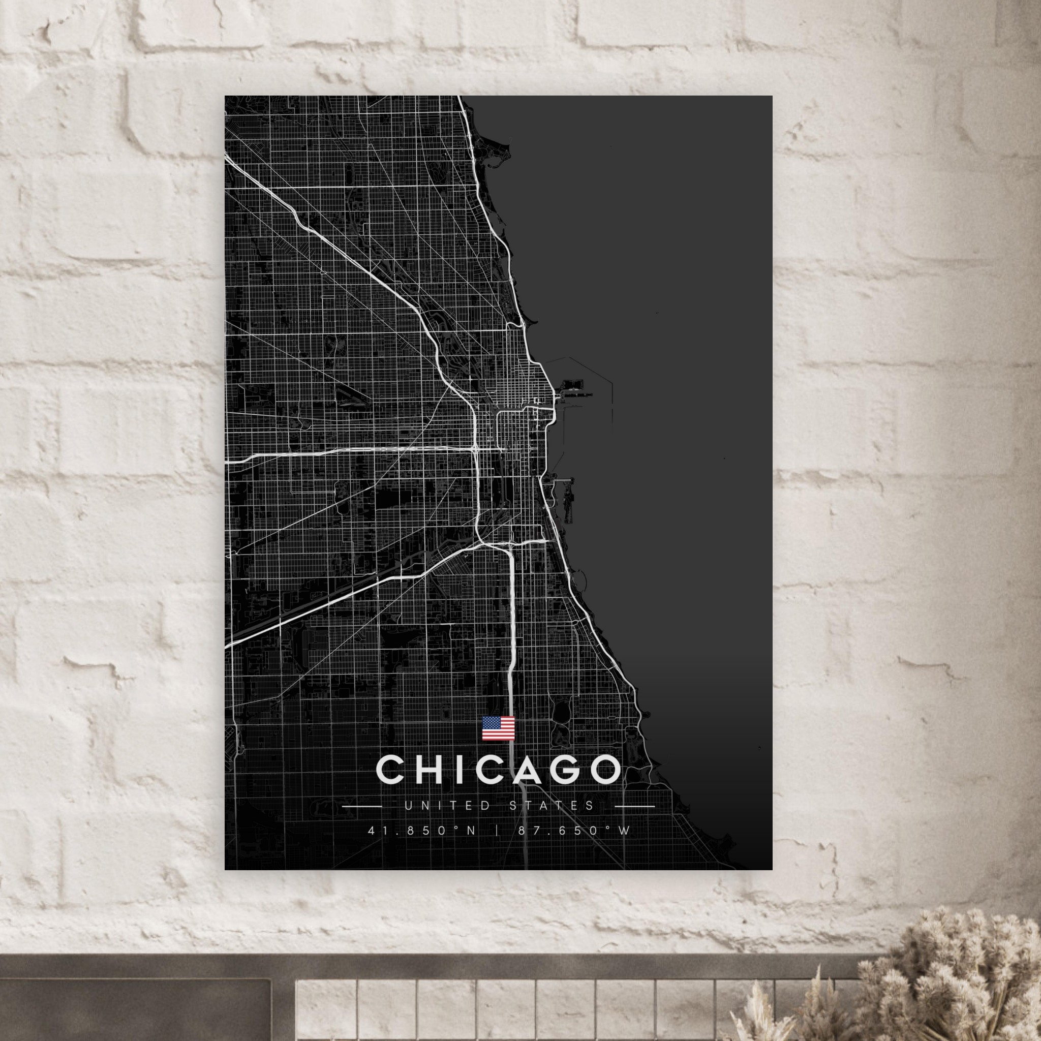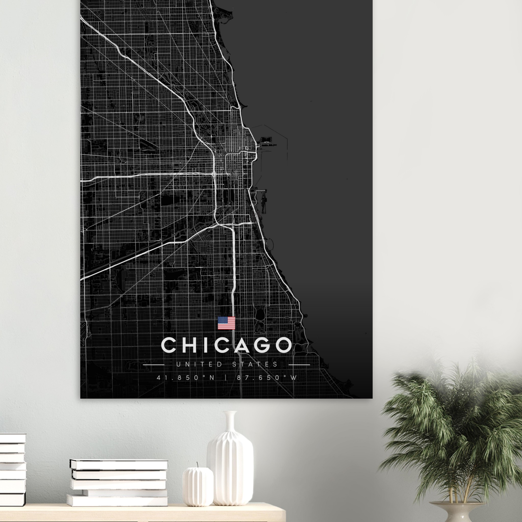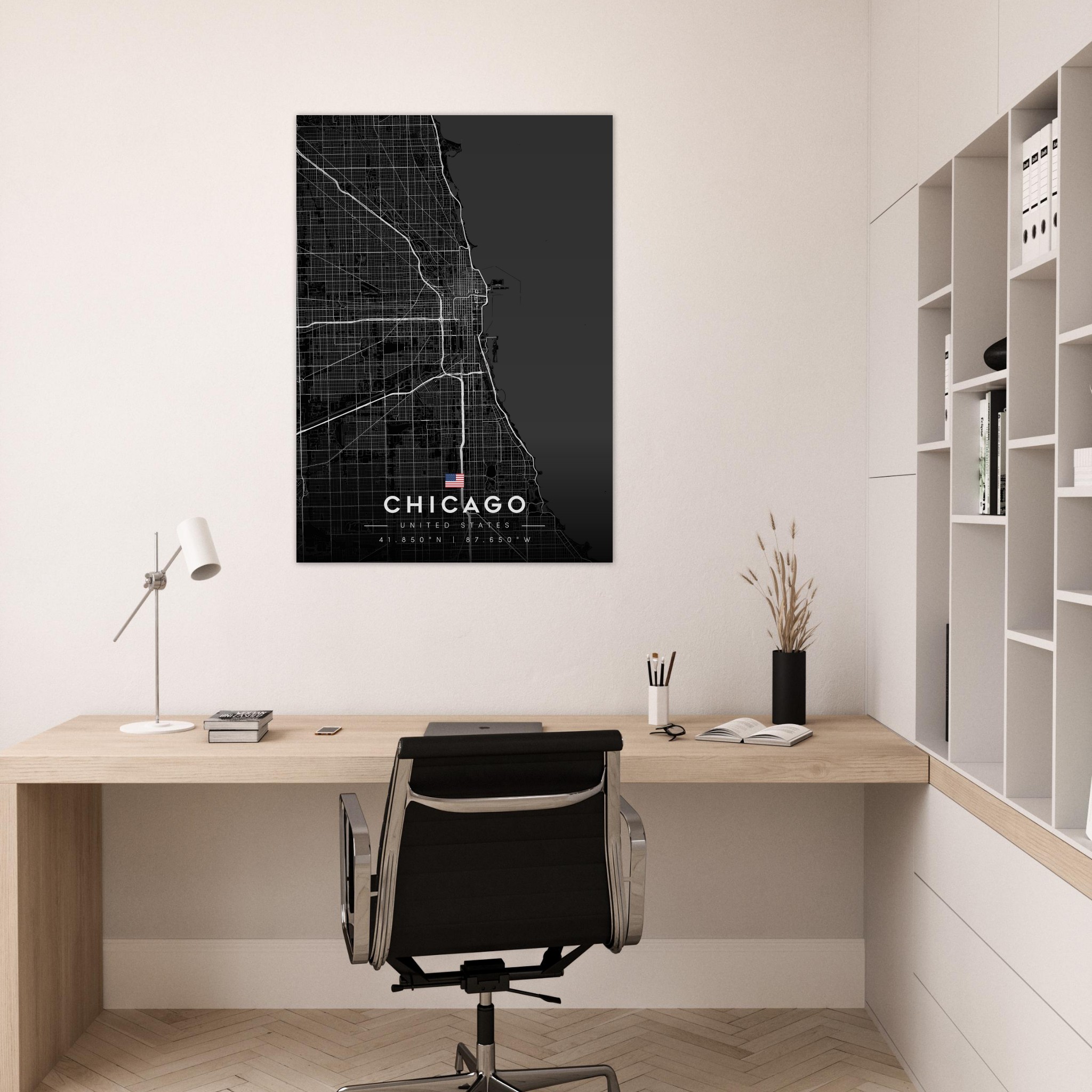 Chicago Map Poster, Dark Mode Wall Art, Carbon Black City Print, Modern Home, Office Decor, Urban Gift