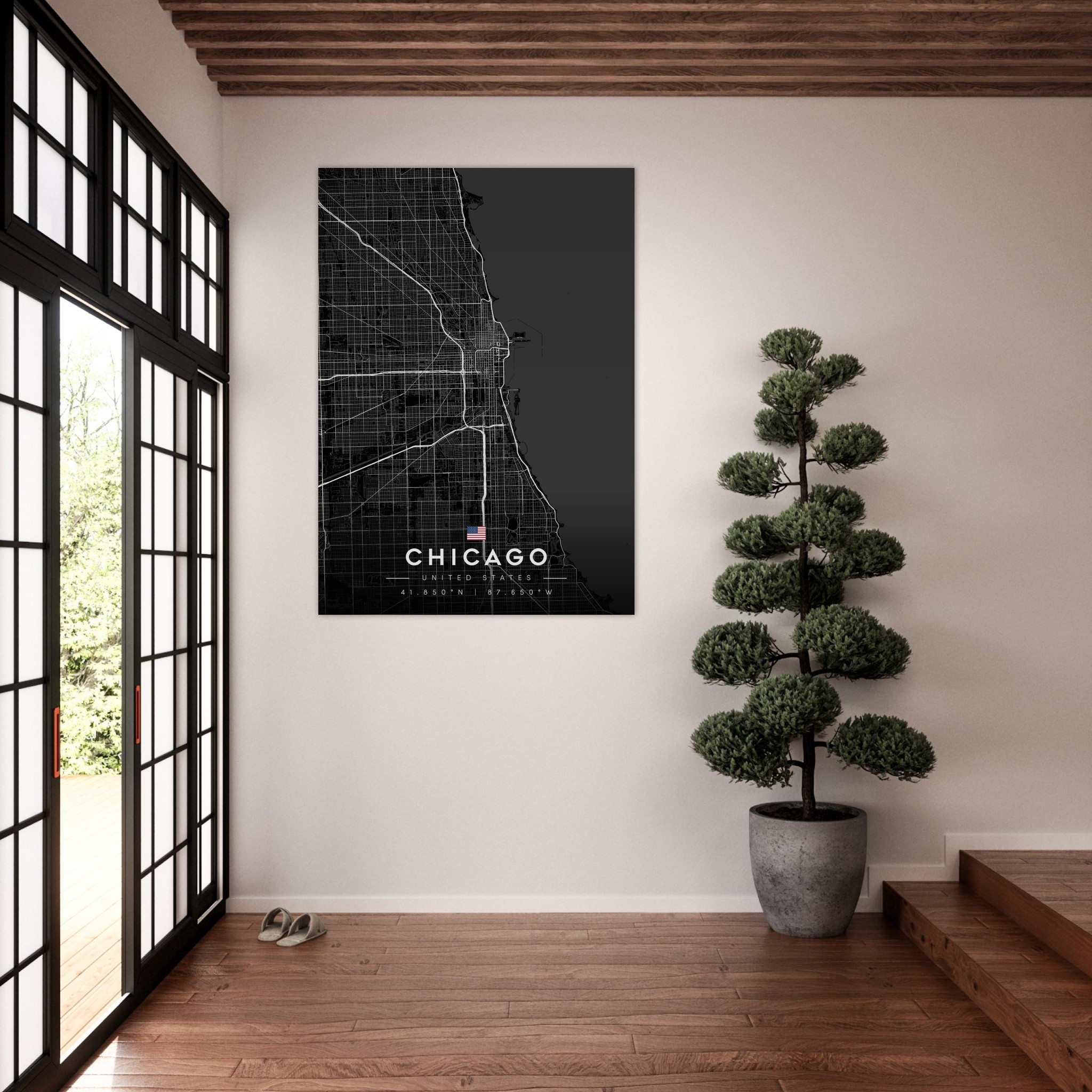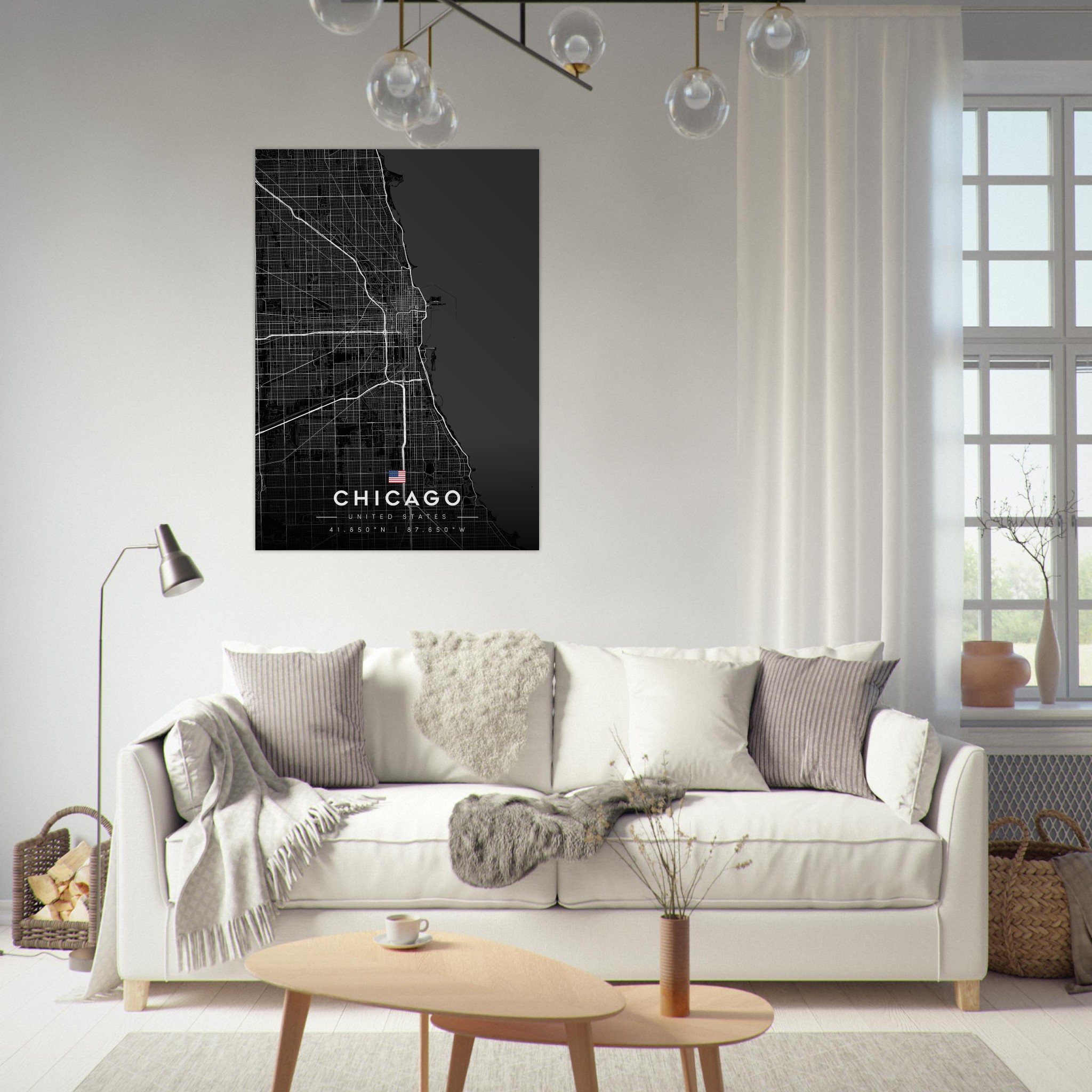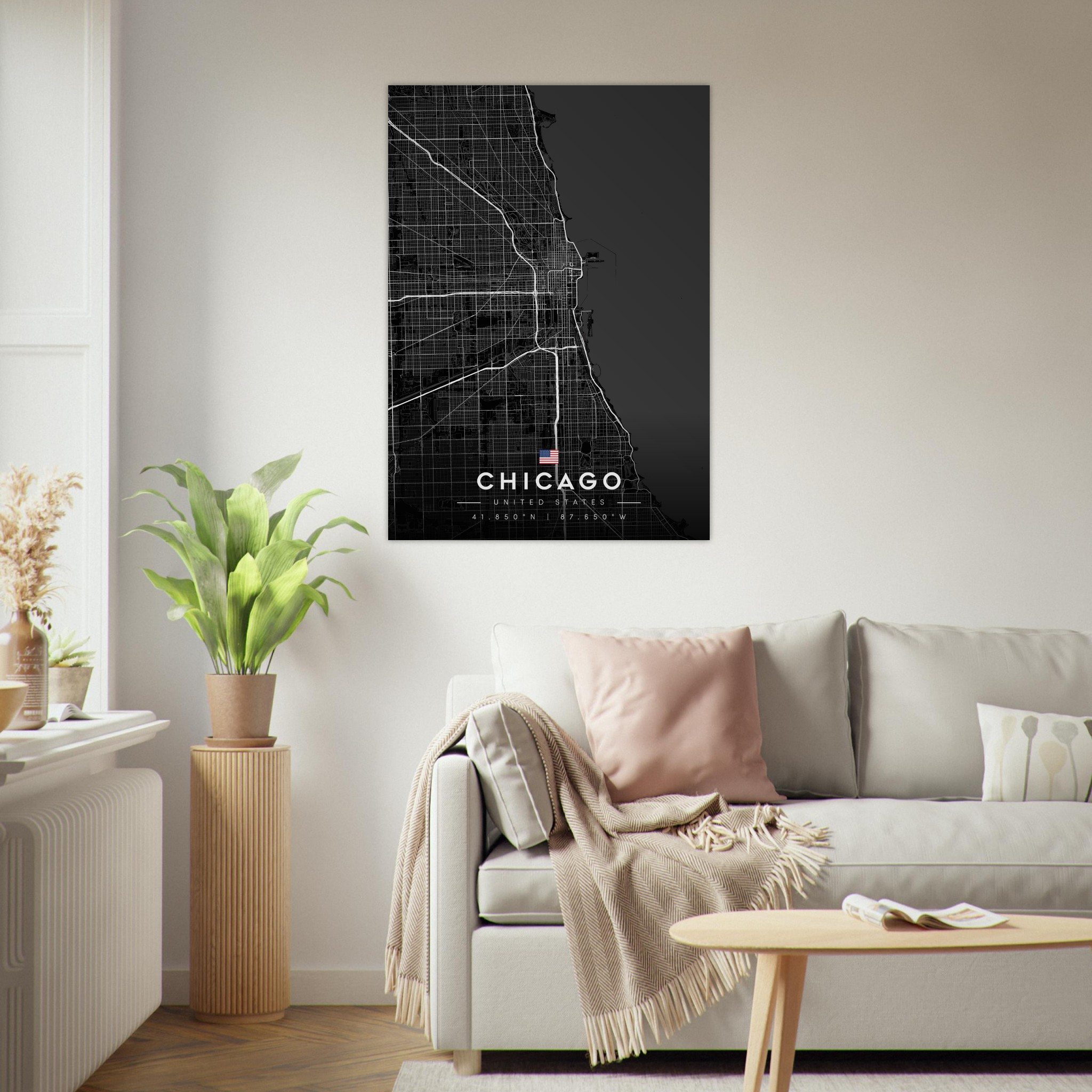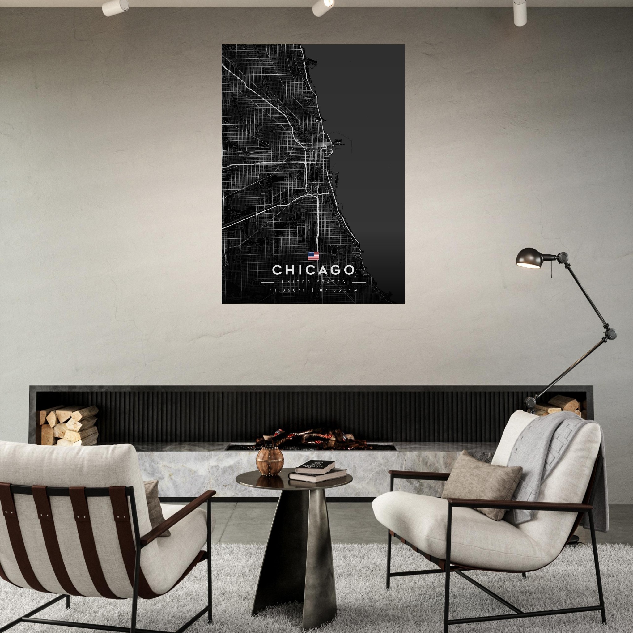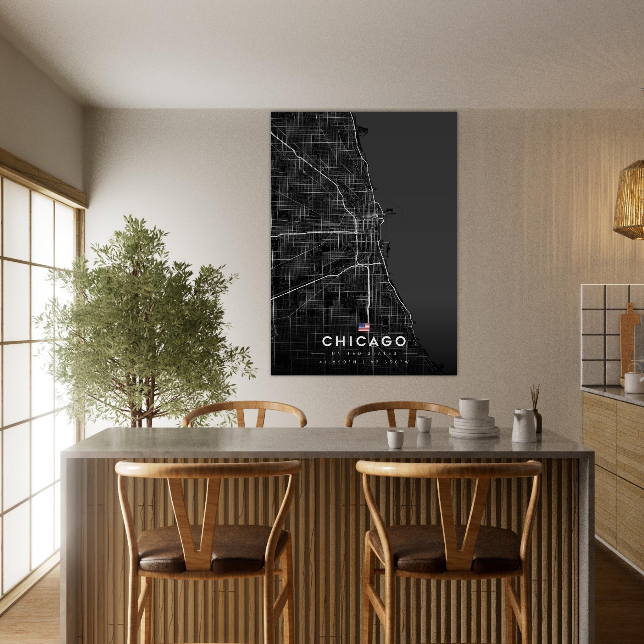 Chicago Map Poster, Dark Mode Wall Art, Carbon Black City Print, Modern Home, Office Decor, Urban Gift