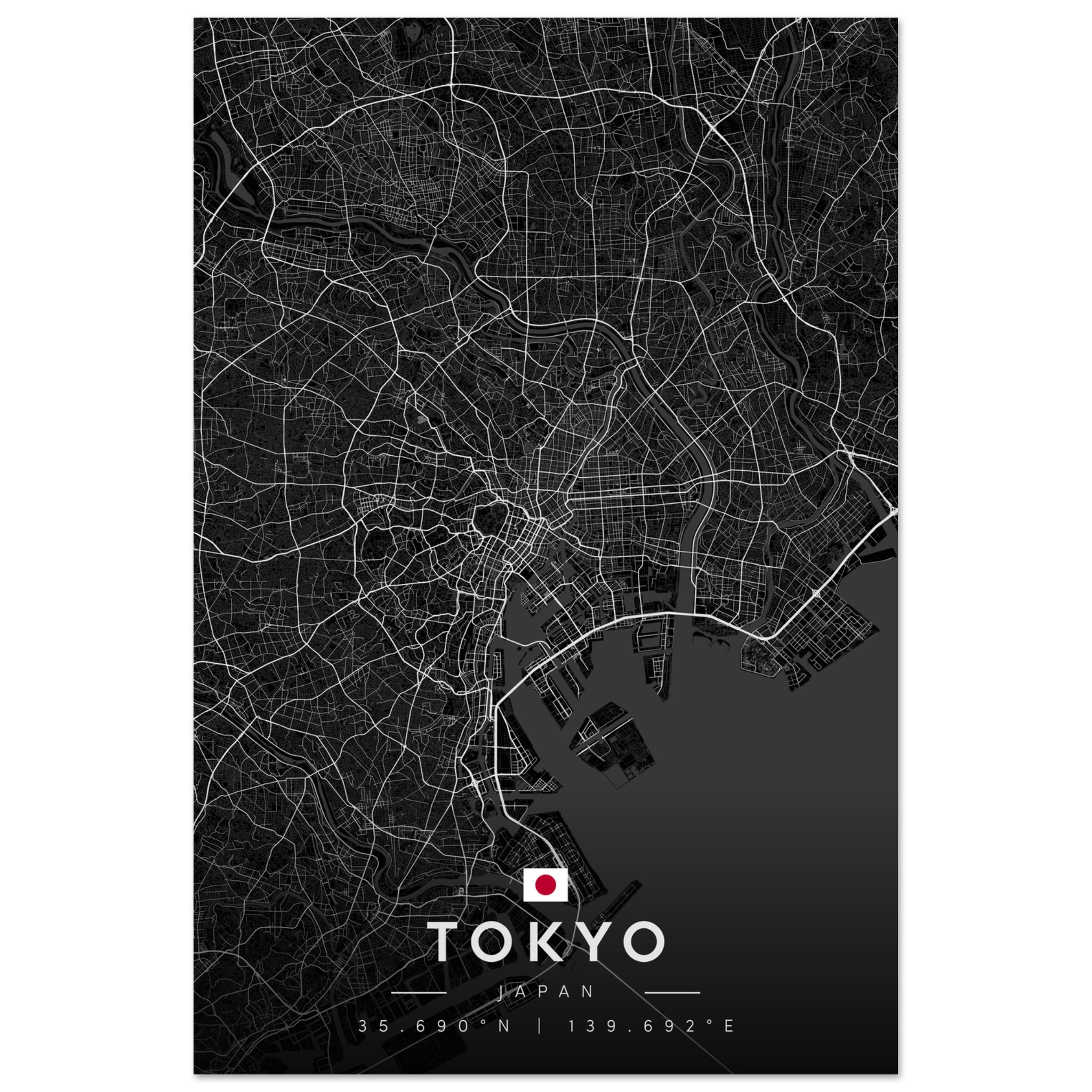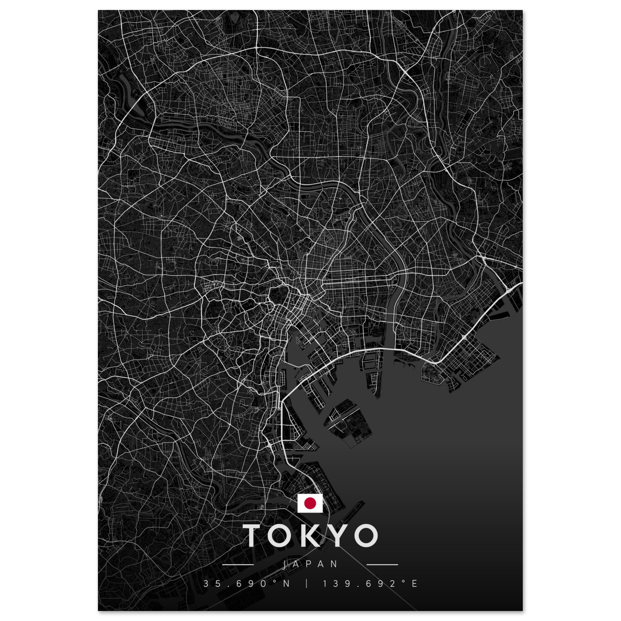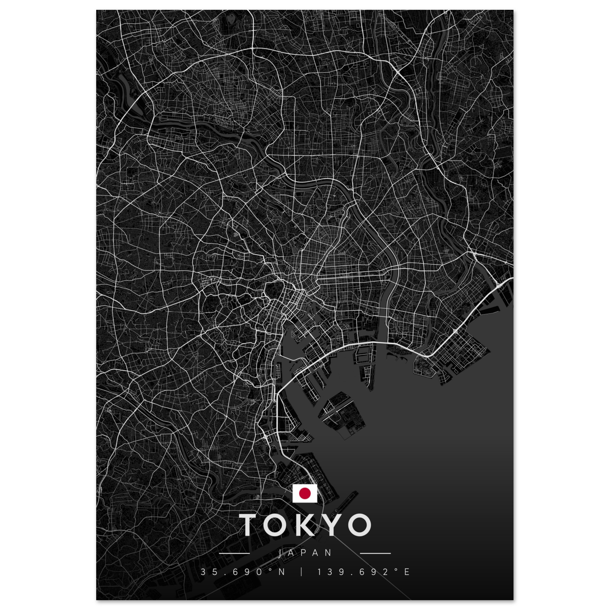 Tokyo Map Poster, Dark Mode Wall Art, Carbon Black City Print, Modern Home, Office Decor, Urban Gift