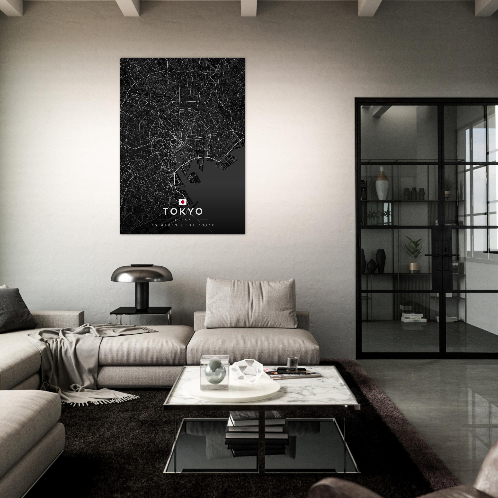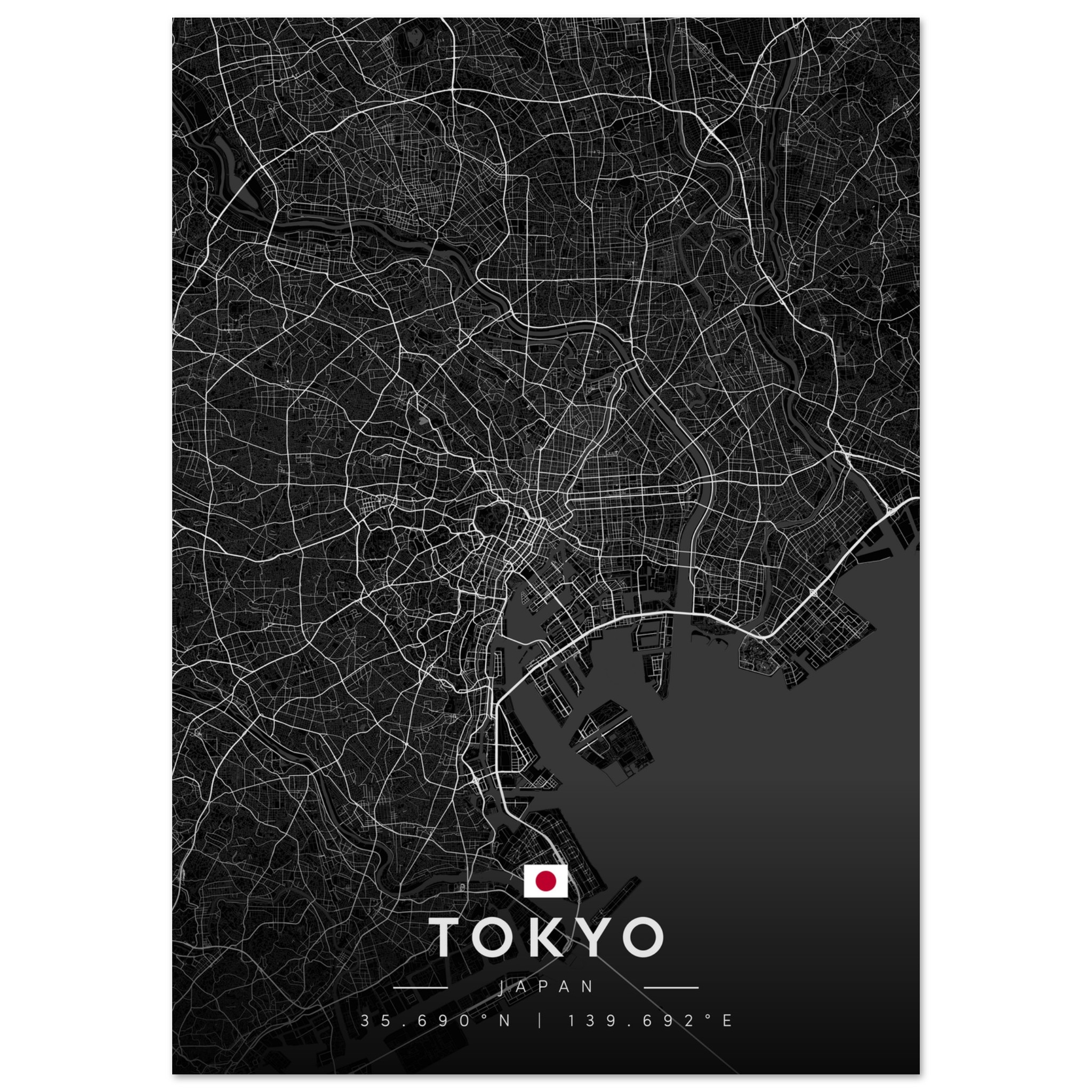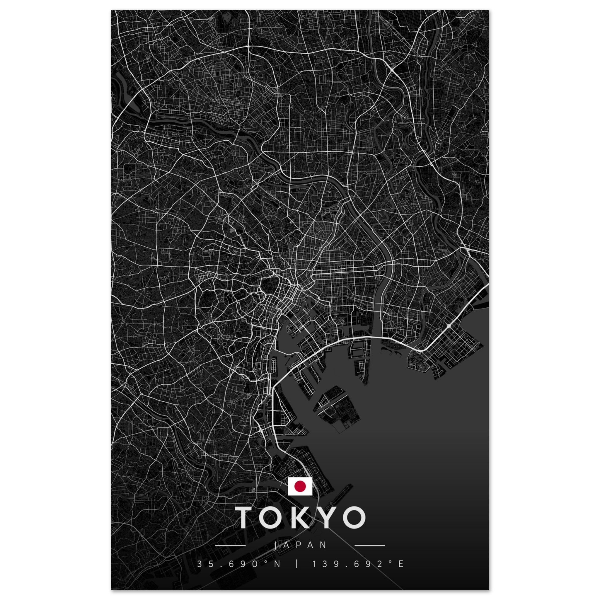 Tokyo Map Poster, Dark Mode Wall Art, Carbon Black City Print, Modern Home, Office Decor, Urban Gift
